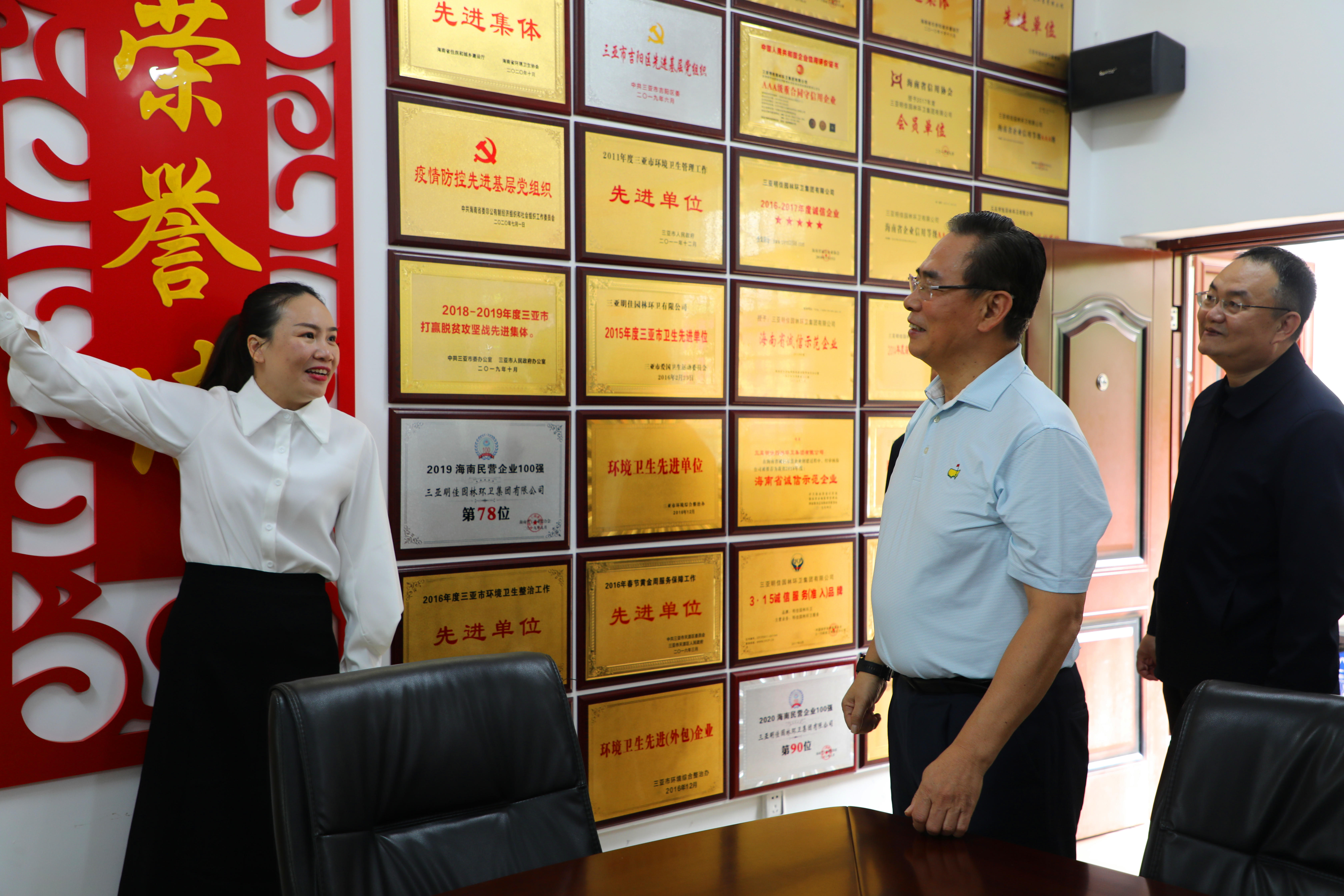 蔡副主席一行來到明佳集團職工之家,工會主席高斐斐介紹職工書屋由三亞市總撥??睢⒓瘓F黨支部共同出資建立,現(xiàn)藏書一千余冊,并配備投影儀、電腦、電子閱覽器等設備,蔡副主席對職工書屋的建設表示了充分的肯定。來到企業(yè)榮譽墻面前,高斐斐介紹了近期工會工作取得的海南省工人先鋒號等榮譽,蔡副主席對工會取得的成績表示了極大的贊賞。