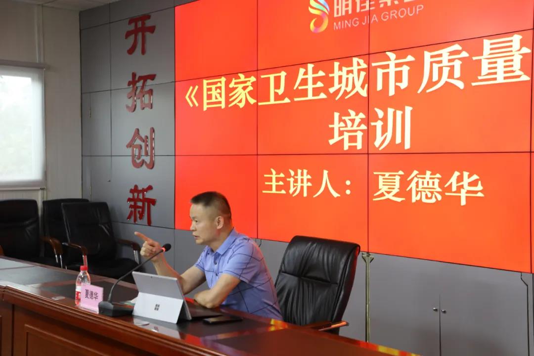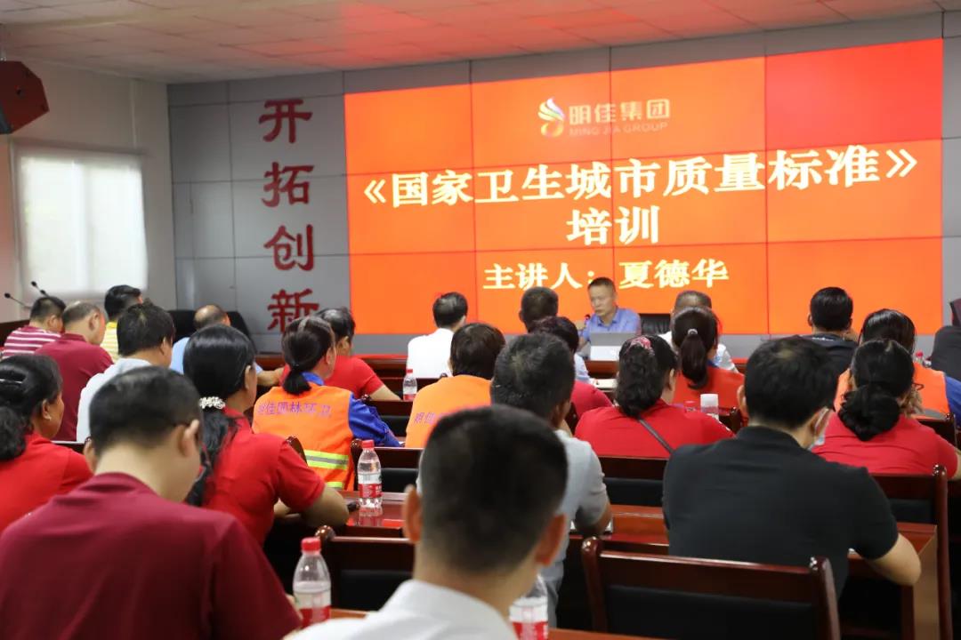 此次培訓(xùn)分三項(xiàng)內(nèi)容:一是總裁陳云分析國(guó)家衛(wèi)生城市復(fù)審形勢(shì);二是夏德華調(diào)研員進(jìn)行《國(guó)家衛(wèi)生城市質(zhì)量標(biāo)準(zhǔn)》培訓(xùn);三是副總羅京鮮結(jié)合公司現(xiàn)狀進(jìn)行講解。