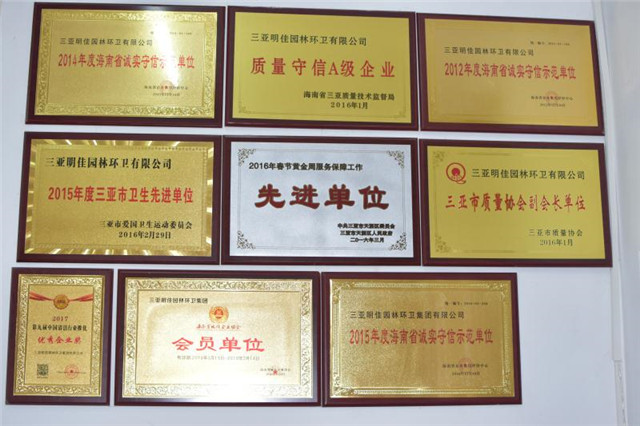 目前母公司連續(xù)五年被海南省企業(yè)信用評(píng)定中心評(píng)定為信用AAA等級(jí)單位,并榮獲中國清潔清洗行業(yè)國家一級(jí)資質(zhì)、城市環(huán)境衛(wèi)生經(jīng)營服務(wù)A級(jí)資質(zhì)、城市園林綠化三級(jí)資質(zhì),被中國清潔行業(yè)推選為國家三星級(jí)企業(yè)、十佳清潔服務(wù)企業(yè)、杰出貢獻(xiàn)企業(yè),并榮獲2016年中國清潔行業(yè)百強(qiáng)品牌,成為中國清潔行業(yè)常務(wù)理事單位、中國衛(wèi)生有害生物防制協(xié)會(huì)會(huì)員單位、中國城市環(huán)境衛(wèi)生協(xié)會(huì)會(huì)員單位、海南省衛(wèi)生協(xié)會(huì)理事單位、三亞市環(huán)境保護(hù)協(xié)會(huì)副會(huì)長(zhǎng)單位,公司先后多次獲得國家、省、市獎(jiǎng)勵(lì)和表彰40余次,成功在海南省股權(quán)交易中心掛牌,代碼:90777,并積極籌劃在新三板上市,已真正成為海南省環(huán)衛(wèi)行業(yè)的龍頭企業(yè)。