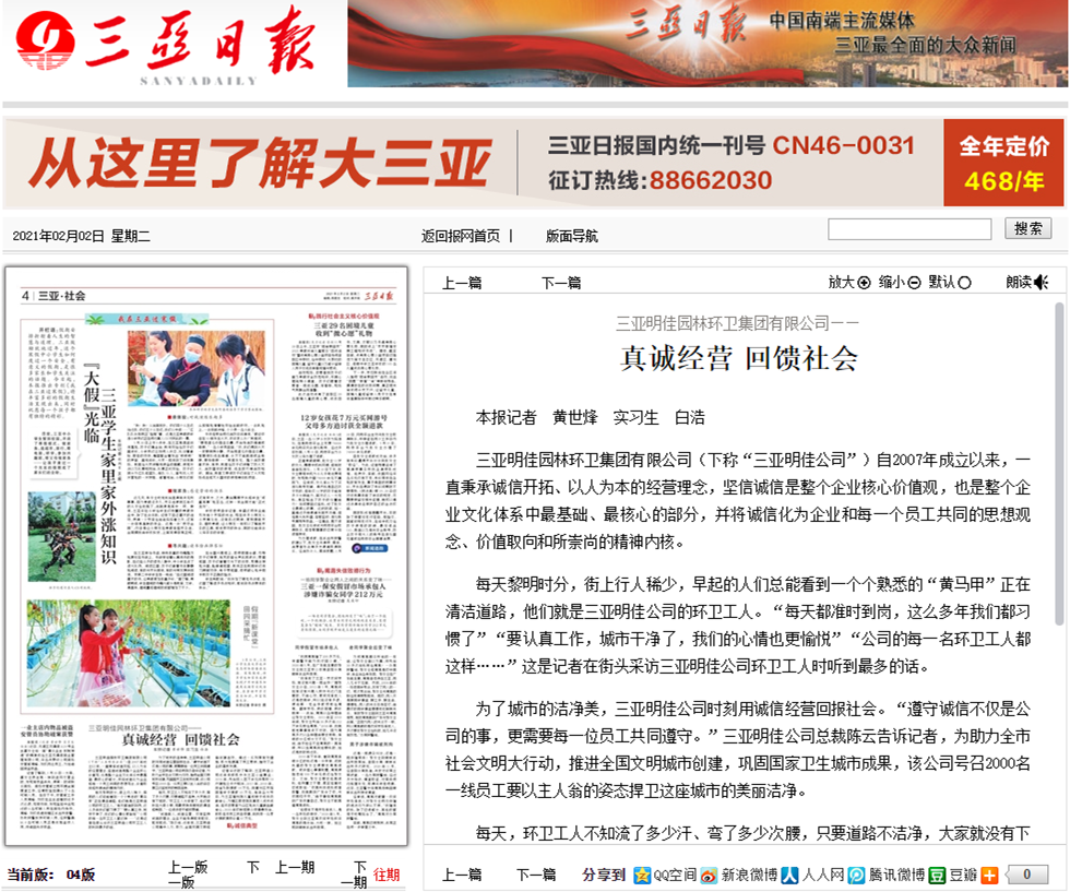 5月20日,2022年海南自由貿(mào)易港(三亞)民營(yíng)企業(yè)座談會(huì)暨營(yíng)商環(huán)境大會(huì)在三亞天涯海角紅樹(shù)林國(guó)際會(huì)展中心舉行。會(huì)上,三亞明佳園林環(huán)衛(wèi)集團(tuán)有限公司總裁陳云被聘任為三亞市營(yíng)商···