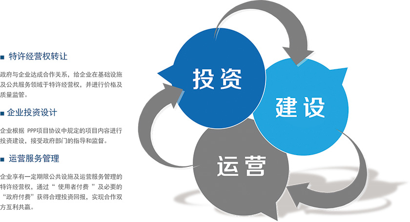 ■ 運(yùn)營服務(wù)管理企業(yè)享有一定期限公共設(shè)施及運(yùn)營服務(wù)管理的特許經(jīng)營權(quán),通過“ 使用者付費(fèi) ”及必要的“政府付費(fèi)”獲得合理投資回報,實(shí)現(xiàn)合作雙方互利共贏。